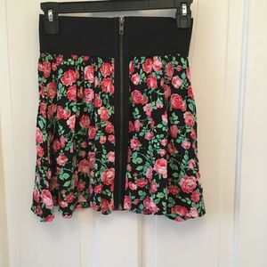 Rose covered skirt with zipper from waist to hem. Brand is PINK Victoria's Secret. Size XS. Length is 16". Perfect condition. No rips or stains. It's lightweight material - flowy and drapey.