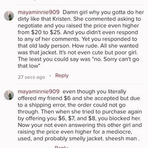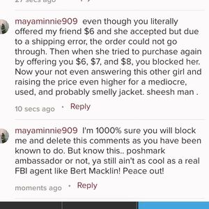 All my friend wanted was a jacket. Alas, due to an unfortunate error of shipping, it wasn't meant to be. Time to move on to bigger and better things. Like dominos pizza @Kristenchic I hope you understand the nature of her excessive bidding now. And I hope you learn that blocking ppl isn't nice. Communication is key. Also this jacket was probably made with Jesus tears bc honestly. The price is raising as much as the gas prices are