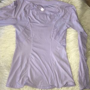 Lavender Lululemon long sleeve shirt. Tag is missing because I took it off, but it is size 8. Only worn three times, so it’s in great condition.