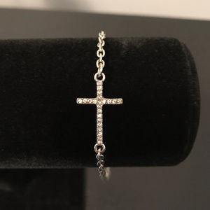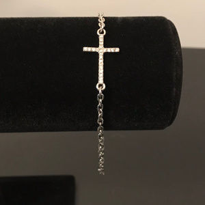Silver toned bracelet or anklet with rhinestone cross. No signs of wear. Approx. 10". N18221