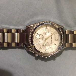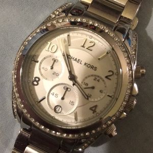 100% authentic Women’s silver Michael kors watch with diamonds, good condition with minimal scratches all diamonds in tact