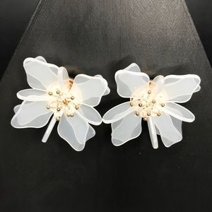 Whether for day or play, complete any look with these fresh and feminine flower stud earrings, featuring a translucent white palette in a glossy finish. White resin, zinc alloy. Finished with a post back. Curated for Closet Rehab.