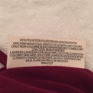 Burgundy in color, NWT, boutique style, cross cross back tunic. 3/4 sleeve. Very light and flowing dress up or down! I LOVE THESE!