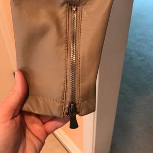 Cream color leather jacket. Detail on shoulder. Zipper on the wrists.