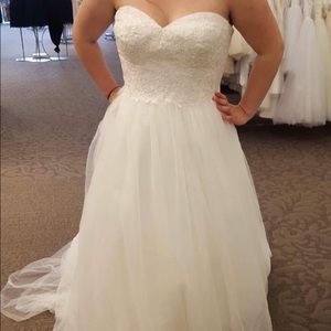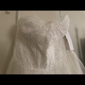I got the dress, shoes, and veil about a year ago. I am still getting married but I found another dress that I like and the veil/shoes won’t match. All NEW WITH TAGS not used! I took photos of all three things with the tags to prove they are new and the prices of each. The dress is a size 14. The shoes are a size 8. This had to be ordered in this size so it hasn't even been worn. Selling for the price of the dress, but the veil and shoes are included. This is a bridal deal. Hope you can enjoy☺️