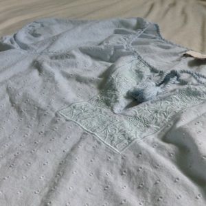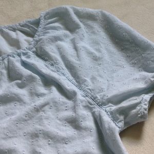 Beautiful & ethereal soft blue peasant top. Background of dotted Swiss and embroidered neckline with tie detail. Perfect for a breezy day at the beach. Roomy and could work for maternity. Too big for me.🐚