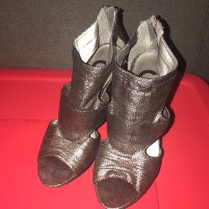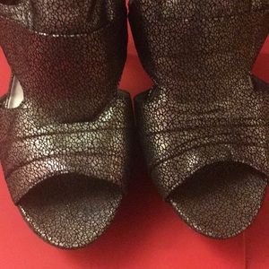 Soft feel. Zipper in the back. Open toe. Black/sliver