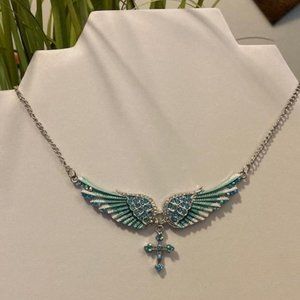 3/$15~Blue Crystal Angel Wing Necklace