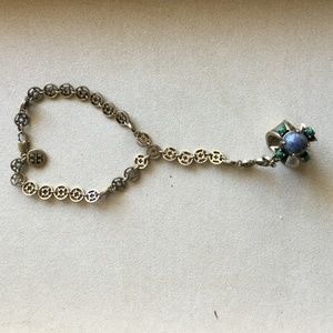 "straight from our runway show, it features an adjustable band, accented with prong-set resin cabochons, finished with a small charm engraved with our iconic double-T logo."