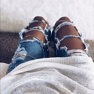 Light Blue Washed Denim Distressed Destroyed Rinestone Embellished Boho Boyfriend Jeans