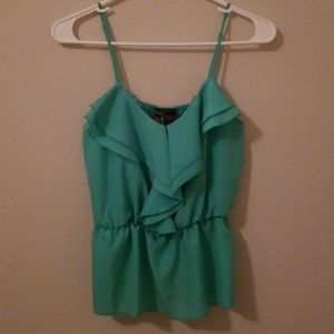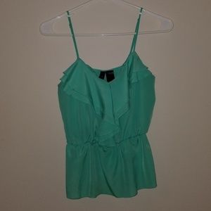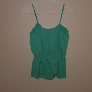 Mint green tank top blouse tapered in the middle. Would be cute with high rise jeans. Worn a few times, in great condition.