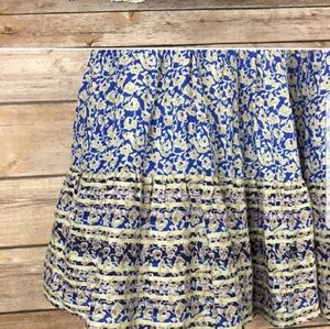 Gorgeous skirt, new without tags! Flowy and gorgeous cobalt blue, yellow, white floral print. 16 inches in length. Elastic waistband, fully lined, three tiered seams. Sits on or below waist. Make an offer!