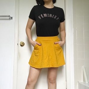 Mustard yellow is perfect for the summer! Dress up this skirt with a white crop top for a night out or dress it down with a comfy tee. Has pockets. A little wrinkly, but in great condition :)