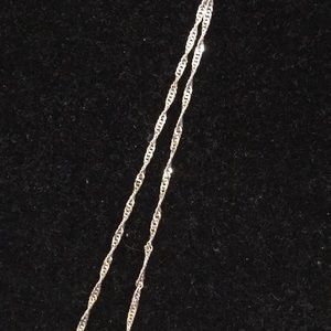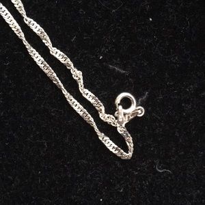 Necklace is stamped sterling on the back, chain is stamped 6w and is super shining. It’s never worn. Pendant has minor tarnish from storage. Chain is about 20”. Comes with gift box
