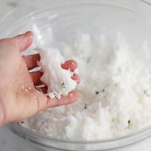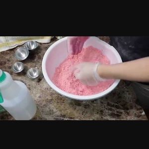 Made using : sodium bicarbonate, non gmo food grade citric acid, fragrance essential oil, sweet almond oil, mica