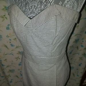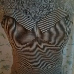 GORGEOUSLY striped blk/wht French Connection Midi Dress. Hem lies just above the knee. Eye and hook zipper closure. Flirty lines/Sweetheart top. Sleeveless and ready for lunch or a lovely dinner paired with a shrug...NWT!🌹