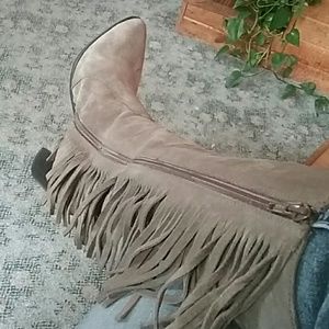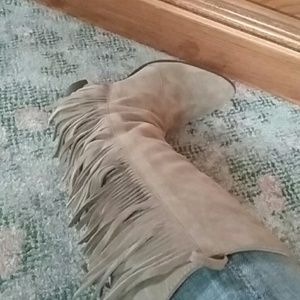 Wore 1 time beautiful soft cow suede 4 inches on heels hits just below the knee
