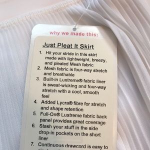 Brand: Lululemon Athletica just pleat it skirt / has built in shorts