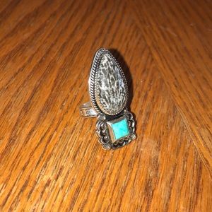 Never worn! Artisan made specifically for me and is completely one of a kind. It is well crafted and heavy duty. The metal is sterling silver and the stones are genuine. Fits 4.75-5. NO TRADES!!!