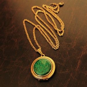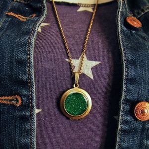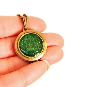 Wicked - Emerald Green Glitter Locket Necklace NWT