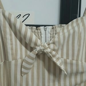 Tan Striped jumpsuit with bow tie