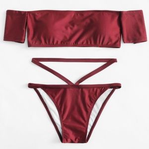 Red Off Shoulder Bikini Set