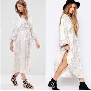 This is absolutely running, just STUNNING β¨ I purchased in two colors for my sonβs newborn shoot & I ended up going with blue. Features a modern kimono style, cream & brown, boho drop fringe ties, lace-up Chest, flowy bell sleeves, midi fit, & side zip entrance.