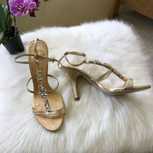 Nine West Gold Jeweled Sandals Size 9