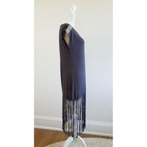 Adorable "Ginger G" brand t-shirt dress bought from a boutique in Door County (Wisconsin). All-around fringe at bottom hem and tribal embroidery at shoulders. This dress is soft and flowy, the fabric is a worn-in gray. I had removed the inside fabric/care tag because it made the dress lay funny, but I know this is a medium - it would also fit a small. Stretchy, with a t-shirt feel. Total festival vibes! I wore this a few times as a coverup at the pool/beach. It's been washed once.