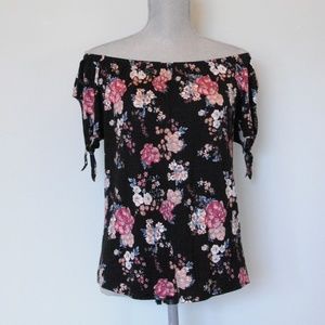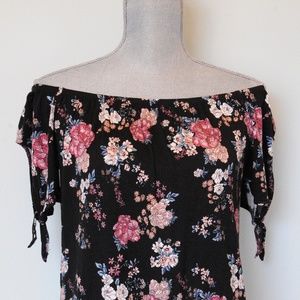 Adorable floral off-the-shoulder top by Pink Republic from Hippie Rose with self-tie sleeves converts to a traditional neckline with a simple slide onto the shoulder. Top in photos is size small. Will provide photos of additional sizes upon request.