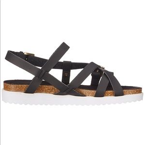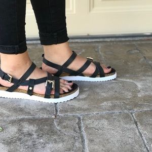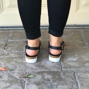 Black Cork Thick Flatform Strappy Sandals