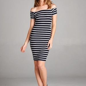 Junior Ribbed Striped Off the Shoulder Dress