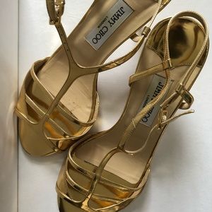 Jimmy Choo Gold Patent Leather KittenHeel Sandals