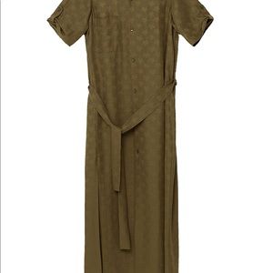 NWT Zara Green Khaki Satin Star Print Shirt Dress