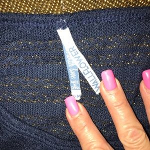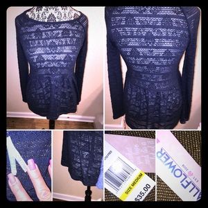 Wallflower brand new navy blue peasant shirt 26 inches long from the back of the neck to the bottom and in the front 24 inches the sleeves are 24 inches long from the shoulder and the breast extends out to 40 inches if needed this is brand new with tags on it get it before it’s gone😎😲