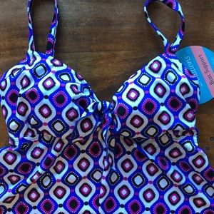 Pop! With Color. Pair this tankini with the pair of black/white/blue or pink bottoms you already own for a whole new look.