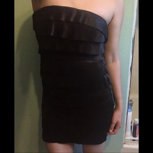 Express Black ruffle cocktail dress. 100% Polyester, dry clean only. EUC - some edges seem to be getting a little "fuzzy" but it is barely noticeable. Would have totally kept this for myself but it's a little snug on me! Size 4.