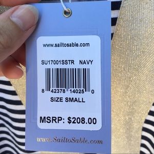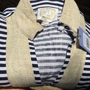 Cute linen mini stripe with gold trim dress from STS. One of their signature styles with easy fit and versatile style. Purchased for $208 - Ask me any questions! π