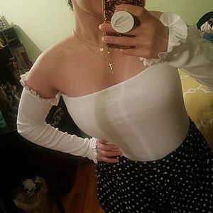White bardot Jersey rib frill sleeve thong