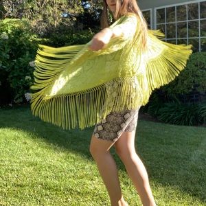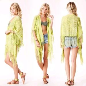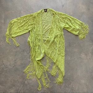 Planet Blue 🌎Lime Green Fringe Cropped Kimono🍋