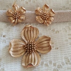 Trifari flowers Earrings and Brooch