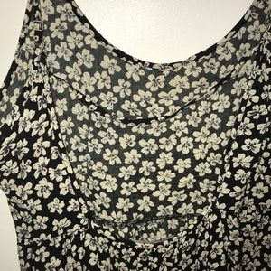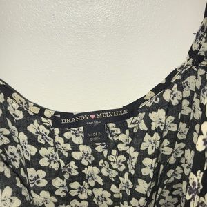 A brandy Melville dress! Very flowy and comfortable to wear. Easy to just throw on or to throw over a bathing suit. Open in the back with adjustable straps. It’s one size fits all but it’s comfortably loose