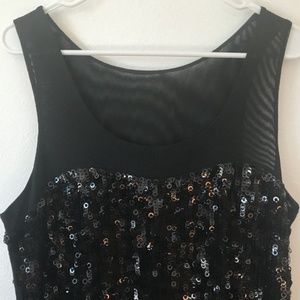 Gorgeous little cute black dress with shimmery sequins and sheer bodice.