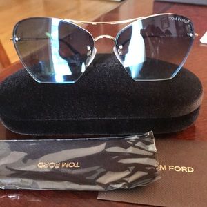 Women's Metallic Cateye Sunglasses Tf507 Annabel 28w Gold/blue Ft0507