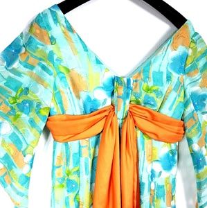Le Costumier Royal Vintage Dress 70's Size Medium Aqua Orange Sash A-Line Flowy, Back zipper, Lined, No size tag but measures like a medium, Good condition no flaws