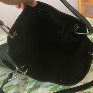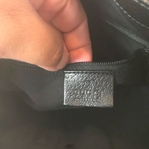 Authentic Signature GG canvas eclipse shoulder bag with gunmetal hardware, leather trim, and dual flat shoulder straps. Single pocket at exterior with magnetic snap closure, dual pockets in interior (one zippered, one open). Magnetic snap closure at top. Preloved, good used condition, minimal wear on trim. No holes or rips. No dust bag. Vintage!