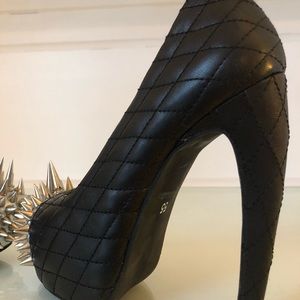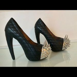 You will love these Jeffrey Campbell leather pumps! They have silver toe spikes which look amazing against the quilted leather along with the curved heels. They are in mint condition with the exception of only a little wear on the bottom of the heels from walking. See pics. Original retail price was $156! Original box included.