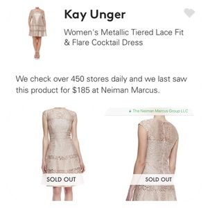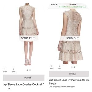 Kay Unger New York- NEW, never worn, but I had removed the tags. Sz 16. Wore another dress to a wedding; too large for me now. Bisque metallic lace overlay. Fully lined under layer. Delicate cap sleeves. V in back with hook and eye closure. True set in waist A line skirt. Purchased frm Neiman Marcus catalog. Non smoking home