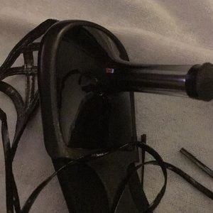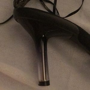 Selling a pair of VS satin slides size 7 1/2. Ankle straps. About 3 inches high heel. Comes with original box and packaging. Grippy rubber soles.