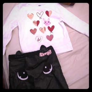H&m Pleather kitty Skirt and Old navy sweater
